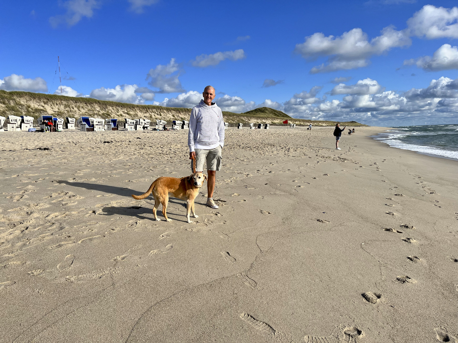 Nach einem kurzen Familienbesuch in Hannover und einem Stop in Husum-Ballum/Dänemark vor der Überfahrt sind wir jetzt auf Sylt. Genauer in Morsum am westlichen Ende der Insel. Während Camilla sich jeden Tag der Zertifizierung zur Wirtschaftsmediatorin widmet, erkunden Joiz und ich die nähere und weitere Umgebung. Wobei „weitere“ bei den Abmessungen der Insel etwas übertrieben ist. Innerhalb von max. 30 Minuten sind der nördlichste oder südlichste Punkt Sylts von Morsum aus gut zu erreichen. Das extra für Sylt angeschaffte „Joiz Mobil“, den Croozer Hundehänger, habe ich bisher noch gar nicht benutzt. Das liegt am Wetter (Regen), Wind (mehr als mir lieb ist) und daran das mein Fahrrad keine Motorunterstützung hat (s. Wind). Einfacher ausgedrückt: es schüttet in nicht vorhersehbaren Abständen und dabei bläst es gewaltig. Die Wetterradar-Apps zeigen entweder Regen wenn es gar nicht regnet oder keinen Regen wenn es gerade mal wieder schüttet. Immerhin haben wir es geschafft im Rahmen einer Führung das Morsumer Kliff zu erkunden ohne dabei nass zu werden und waren sogar 2 x am Strand der Sansibar.
